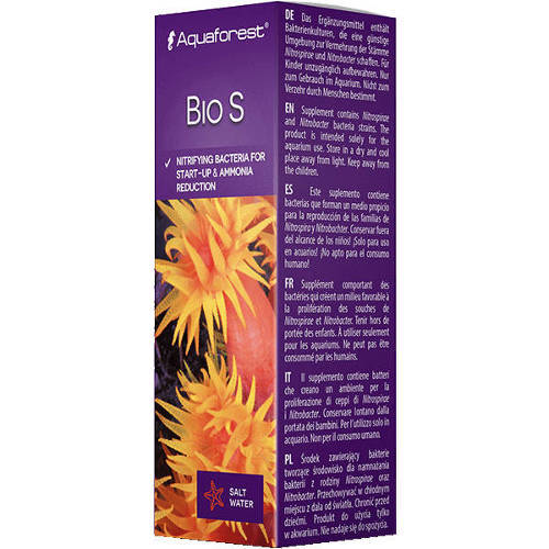 En el proceso de nitrificación, las bacterias eliminan compuestos como el amoniaco y el nitrito del agua. Bio S se recomienda especialmente en los primeros días después de instalar un nuevo acuario para iniciar y acelerar el proceso de nitrificación. Bio S también es perfecto para sedimentar los medios de filtración en acuarios recién establecidos. En acuarios maduros, acelera la descomposición de los restos de comida, así como otros compuestos orgánicos y sedimentos. Mejora la claridad del agua y promueve la limpieza del sustrato. Bio S también se puede utilizar en tanques con sistemas de filtración basados en bacterias probióticas.