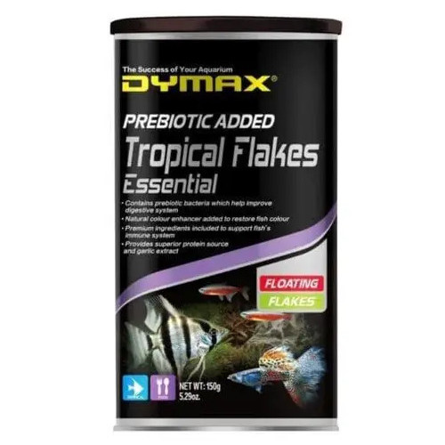 Dymax Tropical Flakes Essential proporciona una dieta rica en nutrientes para peces tropicales de agua dulce como escalares, mollies, guppys entre otros.
