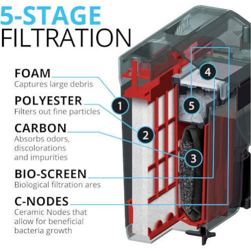 Fluval C-Series es el primer y único filtro de Mochila en el mundo con 5 etapas de filtrado que ofrece dos fases mecánicas, una fase química y dos fases biológicas para una claridad de agua increíble.