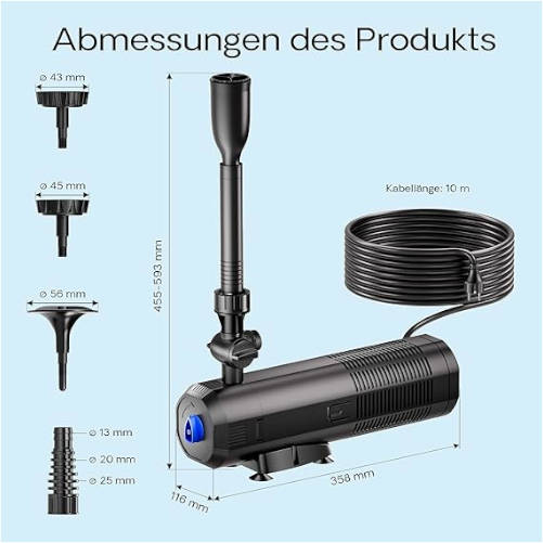 Incluye cerámicos y accesorio de salida de agua regulable, ayuda a la oxigenación del estanque.