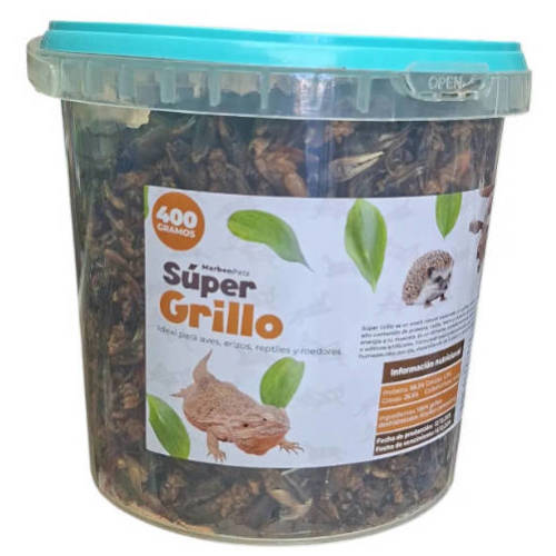 Super Grillo 400g alimento altamente nutritivo diseñado especialmente para roedores pequeños, erizos, reptiles y aves. Excelente calidad.